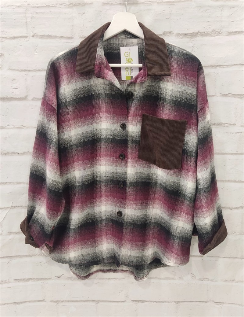 Camisa cuadros bolsillo marrón
