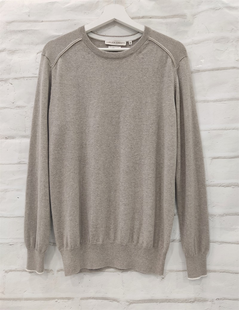 Jersey de cuello redondo, de punto fino. Composición: 95% algodón y 5% cachemira.