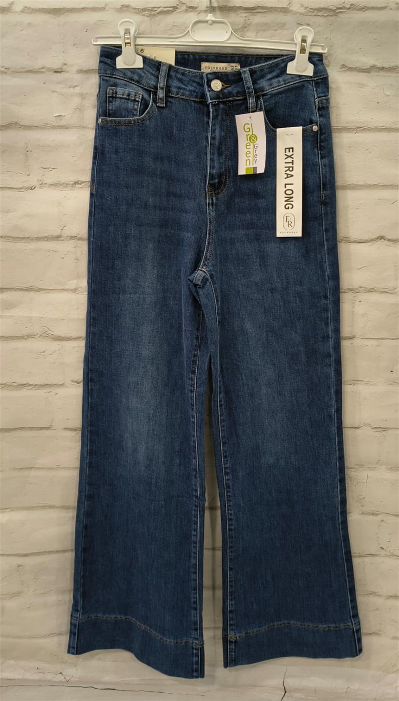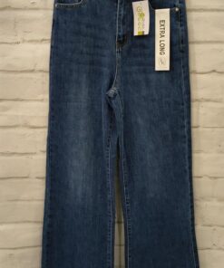 Pantalón vaquero de chica extra largo, en tonos oscuros y de pata ancha. Composición:60% Algodón, 37% Poliester, 2% Rayon, 1% Elástico