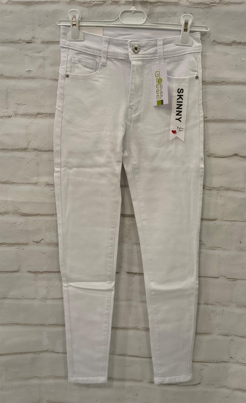 Pantalón vaquero de chica blanco, estilo pitillo elástico. Composición: 97% Algodón, 3% Elastano.